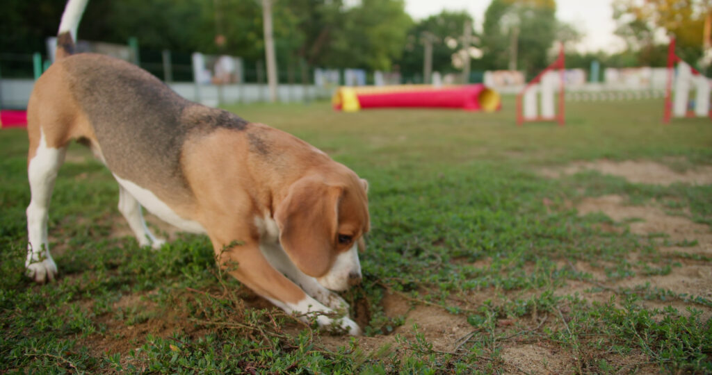 Your dog finishes their business and then starts dramatically kicking grass or dirt behind them.