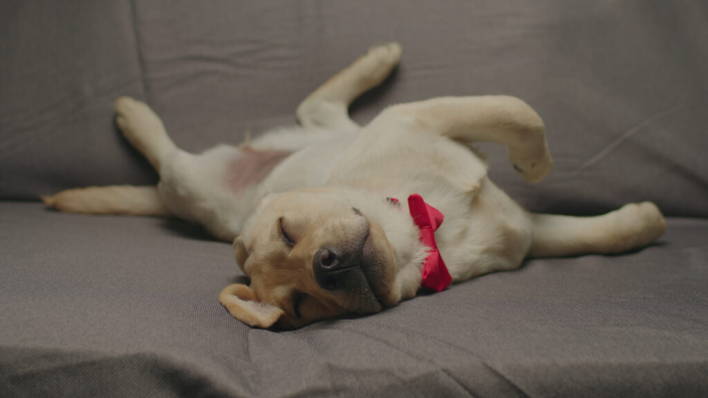 Dogs who sleep like this feel completely safe and secure. This position exposes their most vulnerable areas and helps them cool off, too.